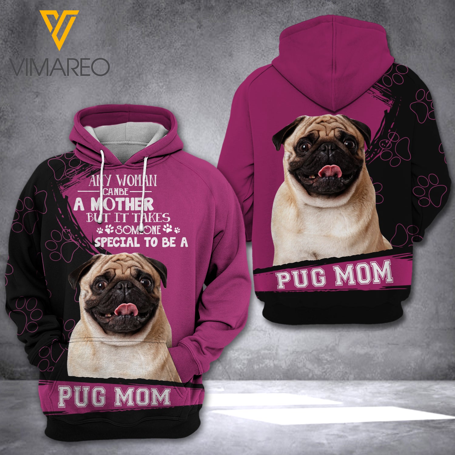 AH PUG DOG HOODIE 3D PRINTED FEB-QH05