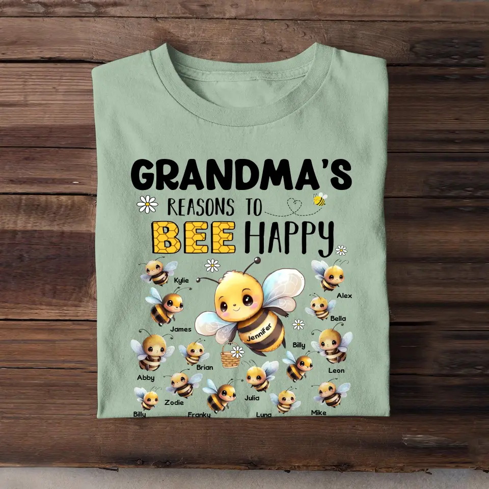 Personalized Grandma's Reasons To Bee Happy Nana Mom Auntie Custom Kids Name Tshirt