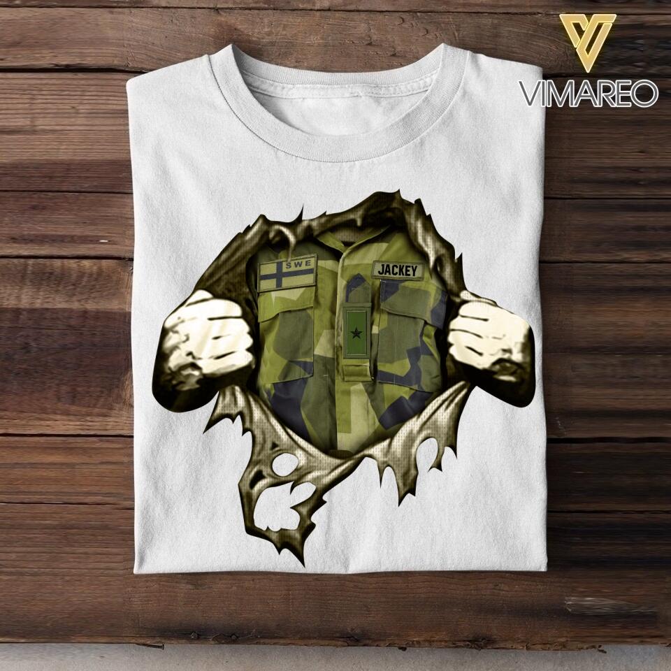 Personalized Swedish Veterans/Soldier Tshit Printed 22APR-HQ25